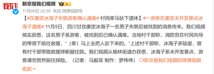 就在一个多月前,一名男子在冰海子失联,11月5日被找到并确认遇难。