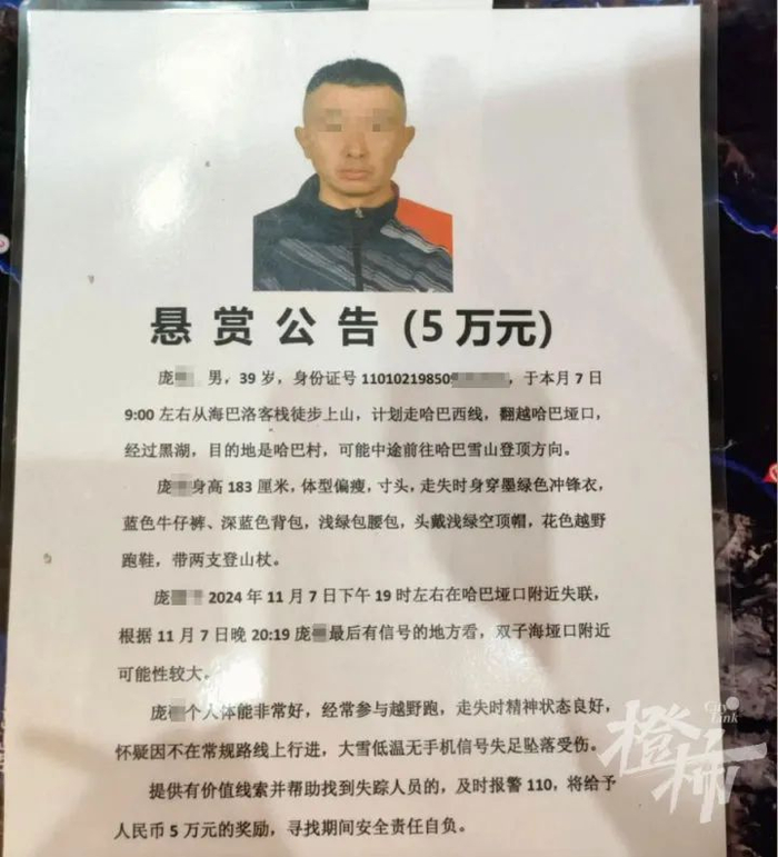39岁男子雪山失联多天,父亲悬赏5万寻人