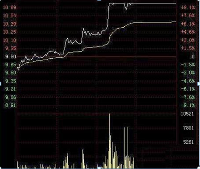 下图,个股上午拉升后一直横盘,尤其大盘是上涨的话,那么要考虑卖出了,等大盘跳水,它肯定比大盘跌得快的。(假如下图上午红盘横盘的,大盘是下跌的,那么是买入的好时机哦,这个大家应该都懂了。)