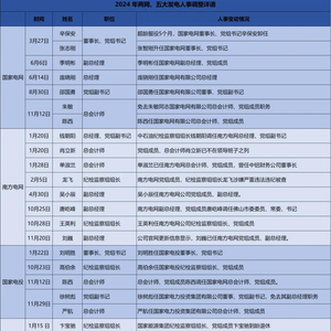 复盘2024年,“两网、五大发电”具体人事变动如下: