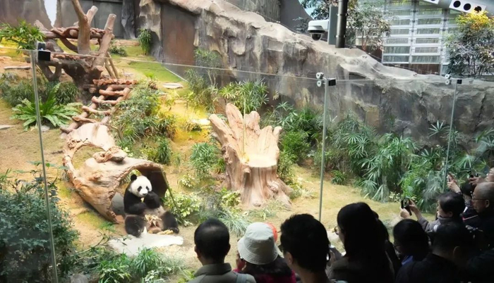 今天的海洋公园一大早便人山人海,“安安”“可可”所在的赛马会四川奇珍馆更是大排长龙。开馆瞬间,不少市民游客一路狂奔,期望能够抢占先机,率先一览大熊猫可爱模样!