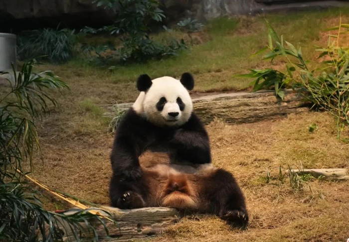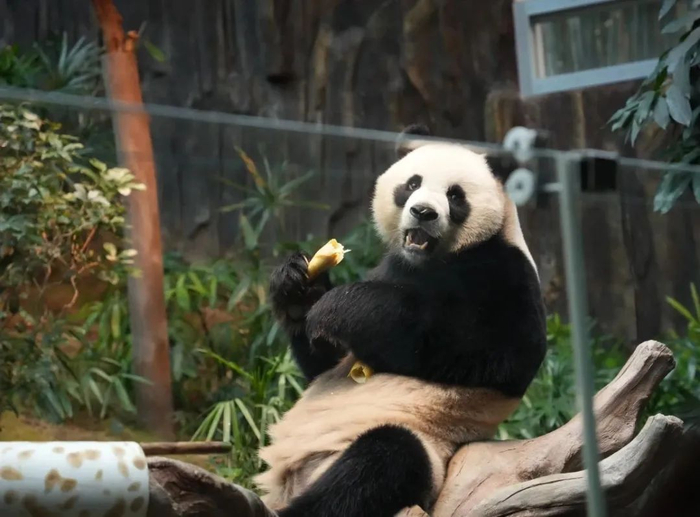 “安安”一出场便直奔主题,来到活动区寻找它最爱的竹子,大快朵颐。场外聚集大批市民游客,“安安”好奇心十足,来到看台最前面同市民“打招呼”,还毫不胆怯展示自己,不时爬上高处的树干走来走去。