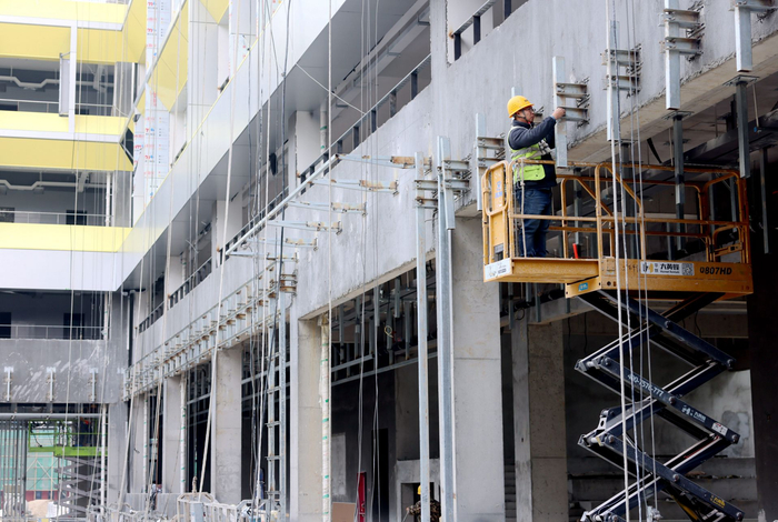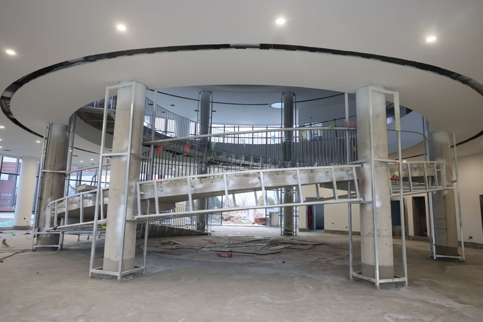 12月6日,位于淮上区的蚌埠三中新校区项目现场,内外装饰及景观等施工正有序进行中,整个校区已经规模显现。该项目位于淮上区龙华路以南,昌明街以西,占地242.8亩,总投资7.6亿元,总建筑面积约12.5万平方米。设计规模为90个教学班,师生约4000人的全寄宿制中学。据市重点工程建设管理中心工作人员曹耀天介绍,目前他们正在进行室内装饰、外立面幕墙、室外道路及景观施工等,预计年底将完成85%工程量,计划明年春季竣工。(融媒体记者 刘晨 摄)