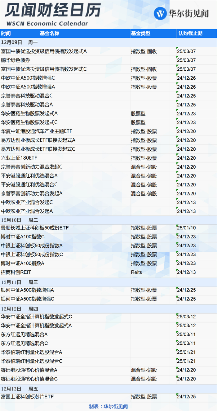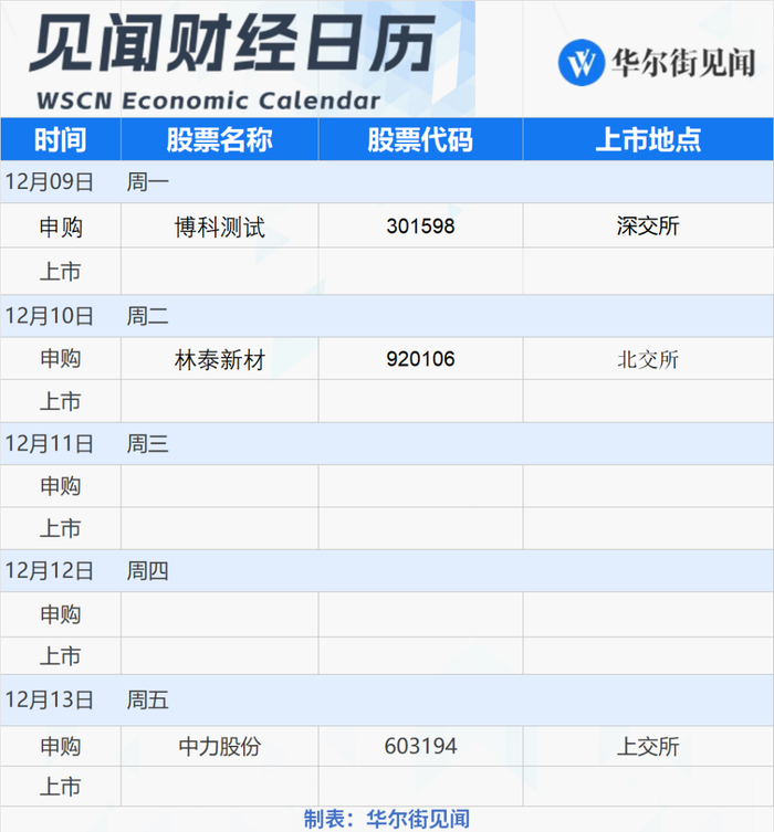 12月9日至12月15日当周重磅财经事件一览,以下均为北京时间: