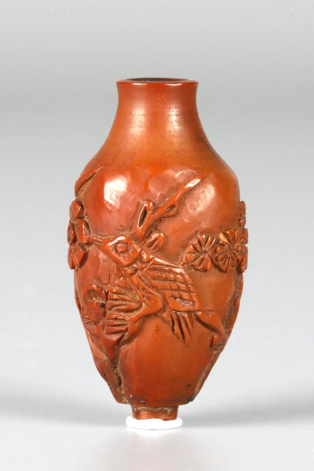 “喜上眉梢 松鹤延年” 花瓶 民国 高3.6厘米,直径1.9厘米,重4.7克
