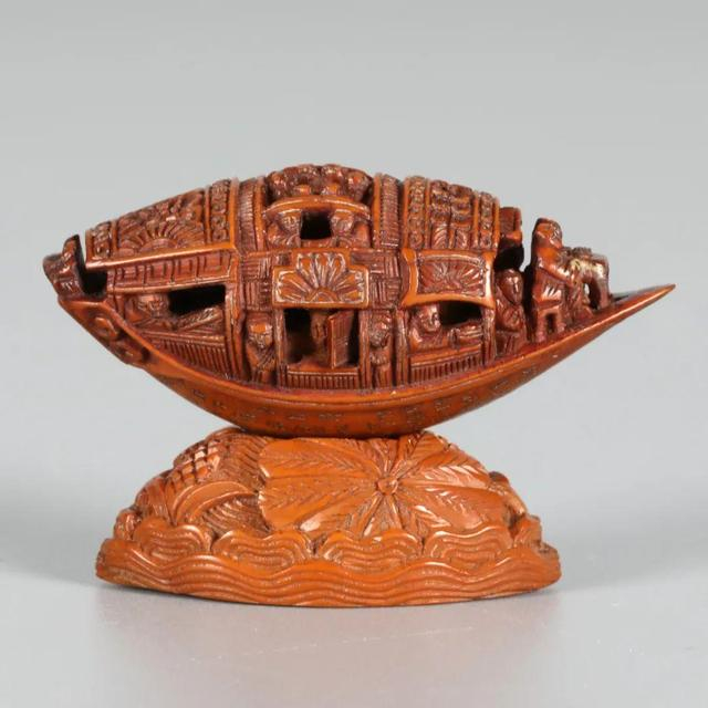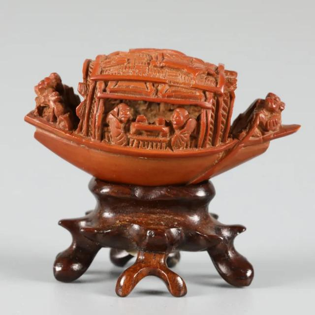 将果核雕刻成小舟,是核雕中相当普遍的方式,且所选用的题材几乎全是东坡居士泛舟赤壁的故事。前述的明清核工中,王叔远、邱山、金老、杜士元等人,皆以核舟作品受到当时或后代文人的赞赏而被记载下来。