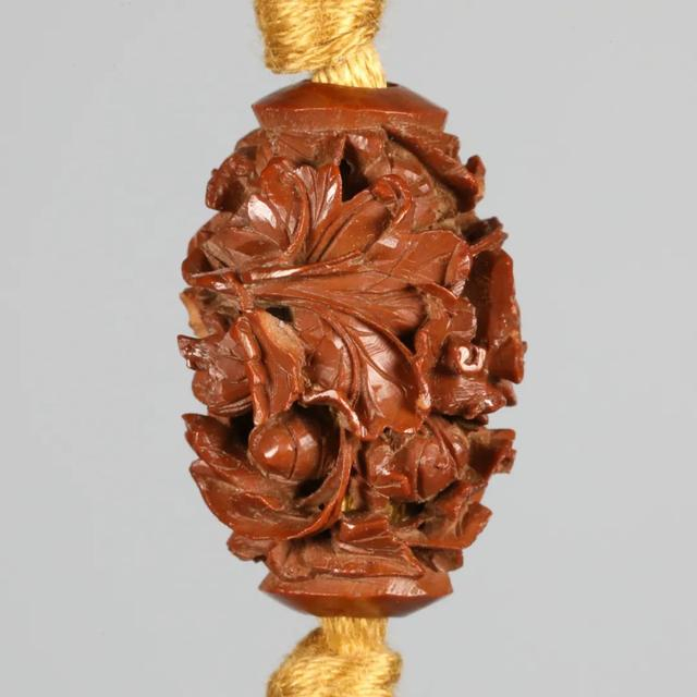 清末,由于战事频繁,核雕业一度凋敝,精美的官造核雕逐渐销声匿迹。幸运的是,核雕工艺在民间仍然受到一定程度的关注和喜爱。民国初年,民间涌现出一批擅雕能刻的核雕高手,如山东的都兰桂及其徒弟考功卿,苏州舟山的殷根福及其子女徒弟等,他们是中国核雕承上启下的名家,为中国核雕工艺的繁荣和发展做出了重要贡献。这一时期的核雕艺人在继承前人技艺的基础上,不断进行创新和探索。以罗汉为题材的念珠形式开始由殷根福发扬光大。
