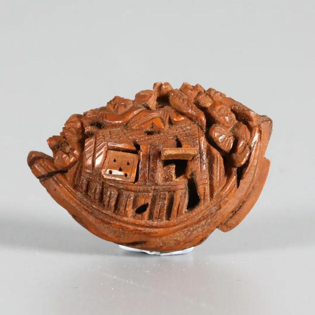 明中期以后,商品经济的繁荣与市民阶级日益增长的物质和文化需求极大地促进了核雕工艺的发展。明魏学洢所著《核舟记》生动记述了天启年间王叔远桃核雕刻作品《东坡游赤壁》的方方面面,使核雕广为人知,并称赞其技艺为“灵怪之材”。果核微雕逐渐成为文人墨客等清雅之士的把玩新宠,并以新奇巧饰为荣。