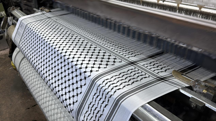 在约旦河西岸城市希伯伦,巴勒斯坦唯一的一家库菲耶工厂——“赫尔巴维”迎来史上最旺的销售。这家家族小厂曾一度经营沉寂,而现在它生产的库菲耶一巾难求,以致官网贴出提示:需求量大,供应有限,每个订单仅限一条。