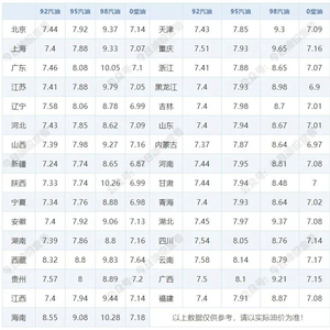 2024年12月8日,92号,95号汽油及0号柴油最新油价如下: