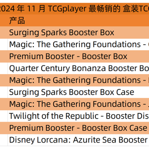 近日,TCGPLAYER发布2024年11月盒装产品排行榜。