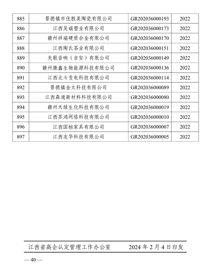 21、2024-08-27江西省江西省认定机构:关于取消江西海福特卫生用品有限公司等146家企业高新技术企业资格的公告