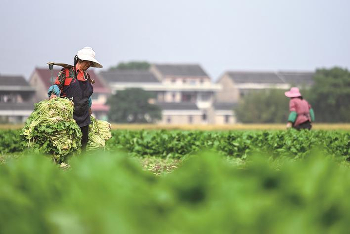 农户们忙碌在田间地头收雪菜。嘉善县天凝镇种植雪菜已有300多年的历史,并享有“中国雪菜之乡”的美誉。