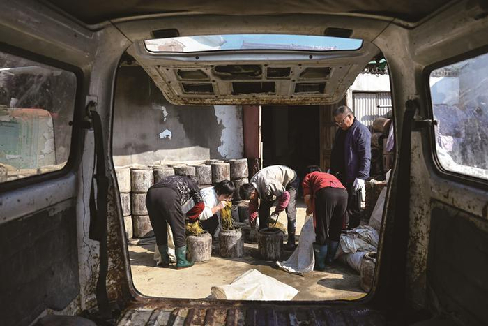 蒋瑜佳和父亲蒋森林到农户家上门收雪菜。三年时间,她直播间的销量翻了三番,每天源源不断的订单让周围的村民看到了直播市场,纷纷请她帮忙带货。她成了村里的“网红”。