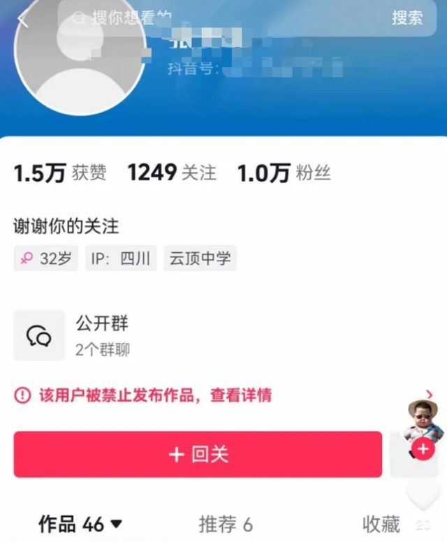 另据中青报·中青网报道,目前社交平台已无法检索到该账号网友发布的截图显示,该用户已被禁止发布作品。