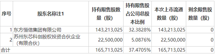 东芯股份是一家存储芯片设计公司。此次解禁股东共两家,分别为控股股东东方恒信集团有限公司和苏州东芯科创股权投资合伙企业(有限合伙)。