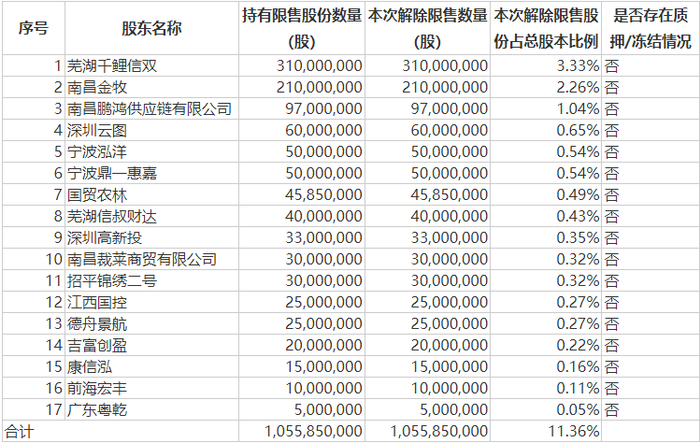 此次解禁涉及股东共17位,为一年前重整投资人的转增股票,限售期12个月。解禁筹码分散,解禁压力较大。