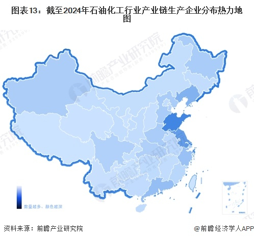 从我国石油化工产业链企业区域分布来看,山东、江苏是我国石油化工企业分布较为集中的地区,此外、广东、新疆、辽宁等地石油化工企业同样分布较多。