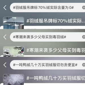 在央视曝光之后,部分通过直播售卖低价羽绒服的带货主播,被曝清空了相关视频内容,更改账号名称,关联店铺也搜索不到……目前,曾被消费者指出羽绒服有质量问题的某百万粉丝带货主播,相关视频只剩3个,其中还有1个视频是致歉声明,承认某款货号存在质量问题,现在全部召回。