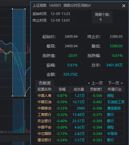 12月9日,沪指今日冲高回落,深成指、创业板指盘中均一度跌超1%。截至收盘,沪指跌0.05%,深成指跌0.55%,创业板指跌0.81%。