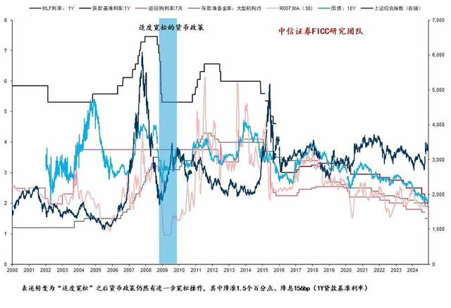 中信证券首席经济学家明明回顾上一轮“适度宽松”货币政策期间,降息降准达到150BP,从大类资产走势来看,先股债双牛,后期股票持续上涨,债券下跌,债券下跌原因在于2011年通胀较高,经济过热。