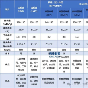 上述四种正极材料的主要特点介绍如下: