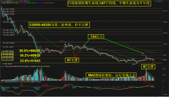 1. 日线级别短期生命线为67日均线,中期生命线为半年线。