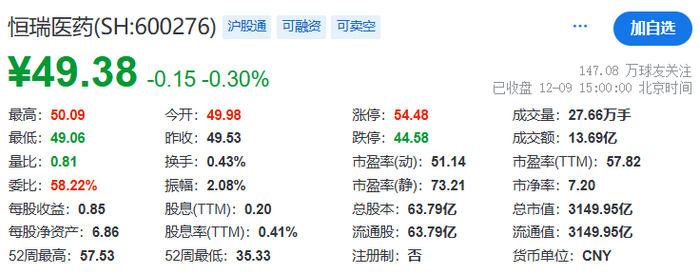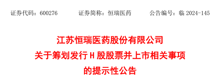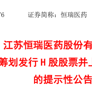 12月9日,恒瑞医药发布公告,为深入推动科技创新和国际化双轮驱动战略,进一步助力公司国际化业务的发展,江苏恒瑞医药股份有限公司(简称“公司”)拟在境外发行股份(H股)并在香港联合交易所有限公司(以下简称“香港联交所”)主板上市。公司将充分考虑现有股东的利益和境内外资本市场的情况,在股东会决议有效期内(即经公司股东会审议通过之日起18个月或同意延长的其他期限)选择适当的时机和发行窗口完成本次发行并上市。