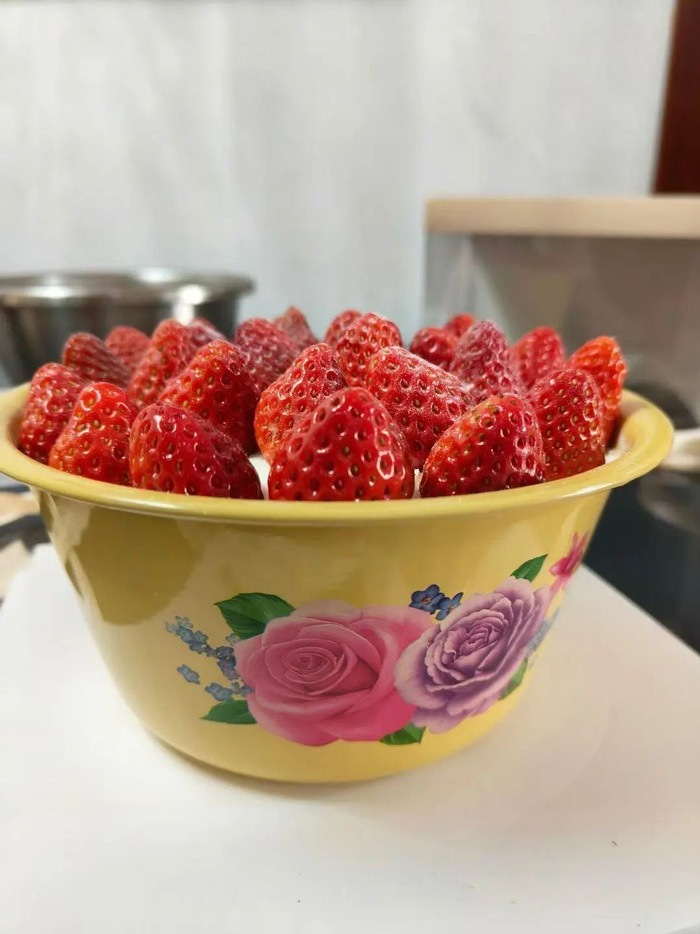 据了解,这种草莓蛋糕用复古的搪瓷盆作为容器,装上满满一层草莓点缀,颜值高又美味,深受年轻群体的青睐。据目测,该店4寸的搪瓷盆草莓蛋糕,盆的口径约10厘米,均匀涂抹草莓酱的奶油蛋糕上面分布着约13只个头偏小的草莓;6寸的搪瓷盆口径约15厘米,分布着约12只个头偏大些的草莓。