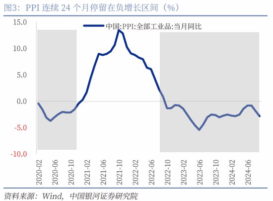 物价长期低位运行在很大程度上反映国内有效需求不足和预期偏弱,受消费和投资的恢复力度仍不及预期以及房地产市场调整拖累,物价走弱趋势尚未见到反转信号,物价-资产负债表螺旋收缩风险加大。