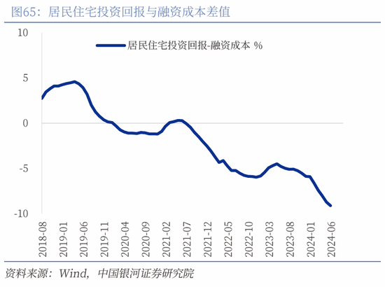 房地产下行周期,投资房地产回报率将随之下行,已不能成为居民财富增值的配置方向。能观察到从2020年起,居民的住宅投资回报已低于融资成本,无法实现正收益。