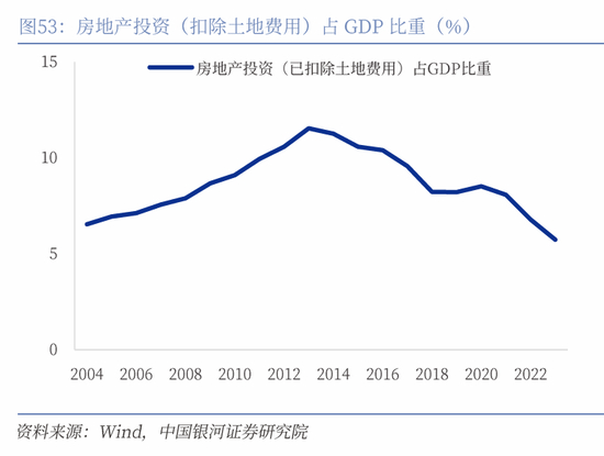 一是加快推动经济增长模式从传统的土地财政转向新质生产力。二十届三中全会擘画了未来中国中长期发展蓝图,其中重要的主线之一便是坚定转型。可以预见的是,未来一段时期以新质生产力为代表的新动能将逐步替代过去“土地财政”的传统增长方式。本轮政策组合拳强有力的应对举措,房地产是重要锚。一方面,对于当前中国经济而言,房地产持续下行无疑将制约经济转型成效。需尽快扭转房地产下行预期,实现新旧动能转换刻不容缓。根据我们测算,房地产调整每年对名义GDP增速的拖累在1.6百分点左右,且房地产行业调整过程中还会增加地方政府债务和银行业错综复杂的潜在风险。数据显示,扣除土地购置费后的房地产开发投资规模由2021年的9.5万亿元降低至2023年的6.6万亿元,占GDP比重从8.6%降低至5.9%左右。另一方面,单纯依靠市场的力量难以实现房地产市场快速出清和企稳,可能延误改革时机。当下中国经济增长模式正从传统的土地财政转向新质生产力,考虑到国内经济长期以来对房地产和传统基建的依赖,市场主导的地产调整周期可能会持续3-5年甚至更长的时间。这意味着未来中国经济在向新质生产力转型过程中,依然需要长时间背负沉重的包袱,这必然会拖累转型的进程和效果,更难以完成二十届三中全会提出的各项改革目标。因此,当下出台强有力的政策来兜底房地产和地方债务风险,从深层次逻辑上是可以令中国经济未来可以尽快轻装上阵来专注发展新质生产力,底层逻辑重构将带来资本市场的向上力量。