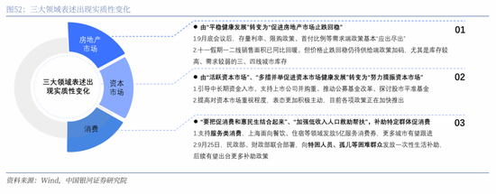 稳字当头,9月政治局会议对当前经济中痛点领域的政策表述出现实质性变化。7月政治局会议曾提出“及早储备并适时推出一批增量政策举措”,9月政治局会议针对当前制约我国经济发展的痛点和堵点进行了全面政策部署,明确了下一阶段我国财政货币政策的方向和措施,对房地产市场、资本市场、企业和民生支持等领域给出了政策指引,直接对应着当前经济所面临的三大痛点。