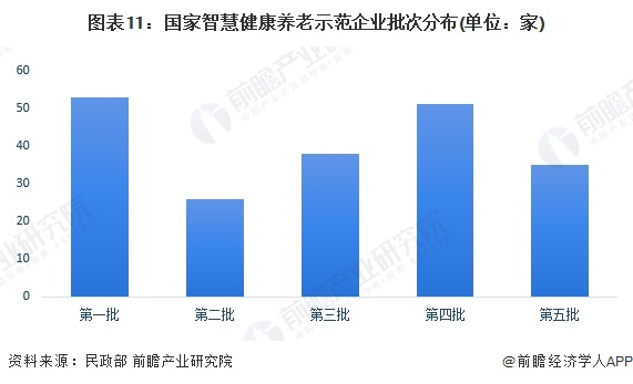 从供给来看,第一批智慧健康养老示范企业有53家,第二批智慧健康养老示范企业有26家,第三批智慧健康养老示范企业有38家,第四批智慧健康养老示范企业有51家,第五批智慧健康养老示范企业有35家,合计企业数量203家,数量相对行业整体较少。