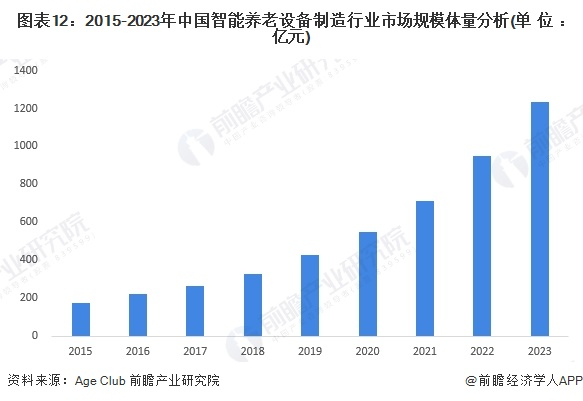 4、2023年中国智能养老设备市场规模约1233亿元