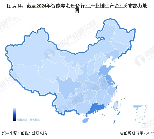 从我国智能养老设备产业链企业区域分布来看,广东、江苏、山东等经济发达地是我国智能养老设备企业分布较为集中的地区,此外,安徽、浙江、辽宁等地同样分布有一定数量的智能养老设备企业。