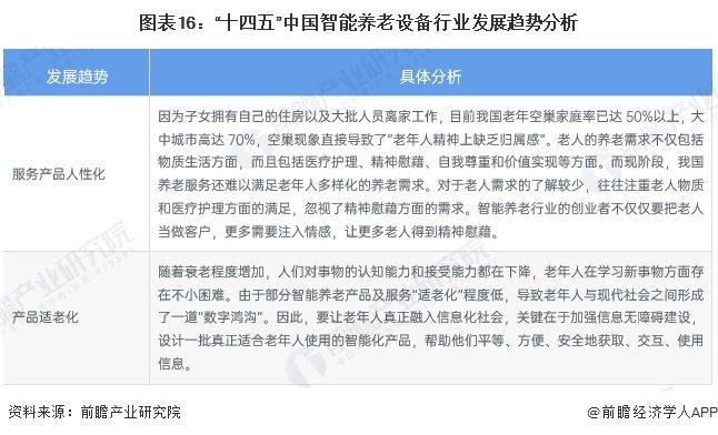 “服务产品人性化和产品适老化”是未来智能养老设备行业发展的重要方向。具体如下: