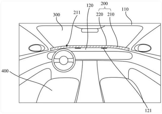 去年 4 月,小米汽车科技有限公司申请了一个「车辆」专利获授权。专利说明中提到,如今大部分车辆在方向盘前方设置有仪表盘,驾驶员需要朝下看才能看清车辆信息,不利于驾驶安全。而该专利将显示装置部分夹设于控制台和前挡风透光件之间,能够方便驾驶员查看车辆信息,有利于提高驾驶安全性。