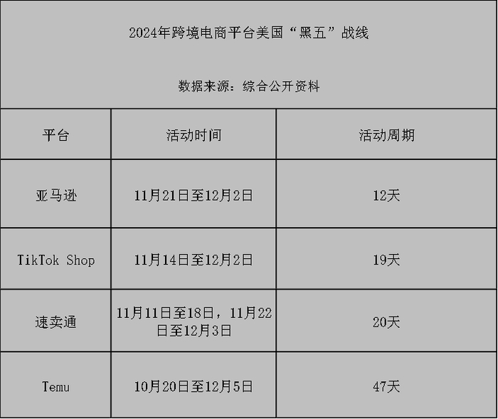 相比卷长周期的中国平台,亚马逊的促销周期依然偏短,把欧美各站的黑五大促时间段定为11月21日至12月2日,为期12天,比去年仅仅增加一天。