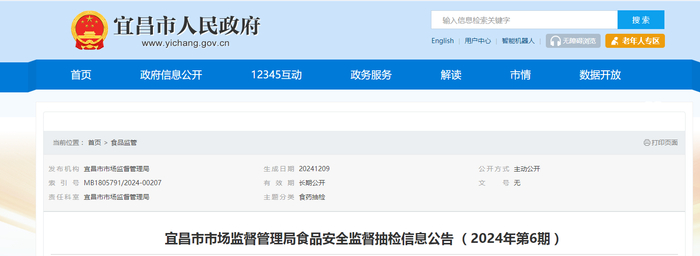 湖北省宜昌市市场监督管理局食品安全监督抽检信息公告 (2024年第6期)