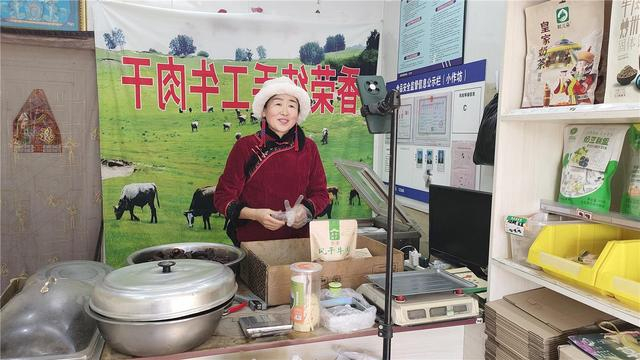 “做纯手工碳烤牛肉干,咱们的牛肉可是精选草原黄牛后腿肉,肉质口感绝佳......”12月8日,在通辽市库伦旗香荣风干牛肉干店,店主香荣正热情洋溢地通过网络直播向网友介绍自家牛肉干和奶制品。过去,她家以线下售卖为主,传统销售方式虽然稳定,但受众群体有限。2022年,香荣开始探索直播带货,平均每天线上销售50余单,销售额最多可达6000余元,为店铺的生意带来了新的发展机遇。“现在70%的顾客都是通过我的直播、微信来购买的,通过直播带货,更多的人认识了我,也喜欢上了咱们库伦纯手工牛肉干,还有我们的奶制品。”香荣说。