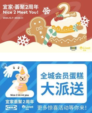 据了解,即日起至12月31日,宜家APP开展专享补贴活动,4000+ 精选产品补贴15%,店庆期间超百款会员特惠5折起,还有指定产品满八件再享受9折;宜家瑞典风味餐厅圣诞系列更多美味惊喜来袭,还有丰富线下活动与市民“宜”起庆生。同时,合肥荟聚12月19日大众点评68代100、2代10超值团券上线,一站式吃喝玩乐购,消费满赠美食券、代金券,庆生抽千元大奖,与市民“荟”享欢乐。