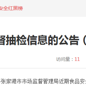 根据《中华人民共和国食品安全法》《食品安全抽样检验管理办法》等规定,现将张家港市市场监督管理局近期食品安全监督(下半年生产环节)抽检相关信息公告如下: