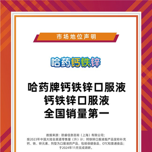 自上市以来,哈药牌钙铁锌口服液凭借其卓越品质、显著效果及科学配比、高效吸收、适宜口感等优势,成功赢得了广大消费者的信赖和好评,满足了各年龄段人群的健康需求。此次荣获全国销量第一的殊荣,不仅是对哈药牌钙铁锌口服液品质的高度认可,更是对哈药集团一直以来坚持科技创新、深耕健康产业的最好回报。