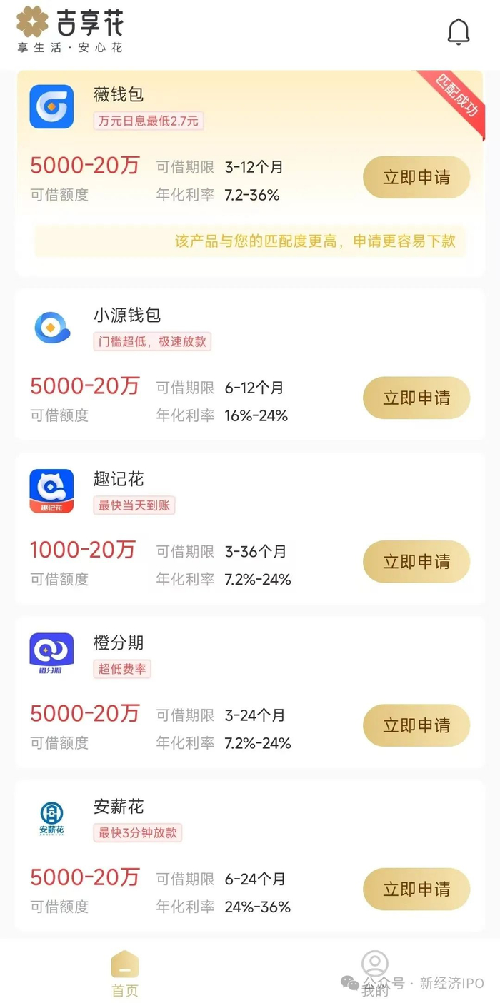 小编下载、注册并向融X贷款平台申请借款,获得29000元额度。其中信用X提供的借款年化利率(单利)35.96%,中邮消费提供的贷款年化利率(单利)23.76%。很显然,融X贷款至今还在提供年化利率36%的贷款,只是小编申请的贷款服务机构不包括“吉客有钱”。