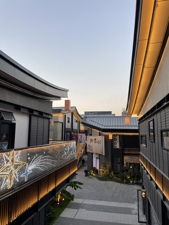 在罍街南区现场逛,有青砖灰瓦、走马回廊、水墨画的徽派建筑、年代感复古元素,也有现代简约的楼体风格和时尚感十足的灯光色彩,纵横的街区,显现市井豪情和合肥生活烟火。