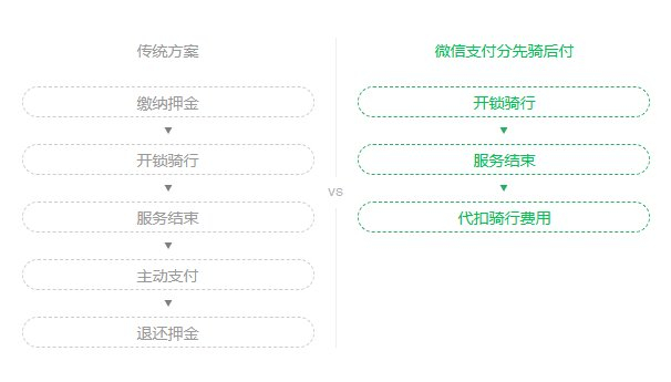 随着共享电单车业态逐步普及,“先骑后付、免押骑行”已经成为用户的消费习惯与核心诉求,接入微信支付分能有效解决“用户抵触交押金、无押用车风险高”等问题。