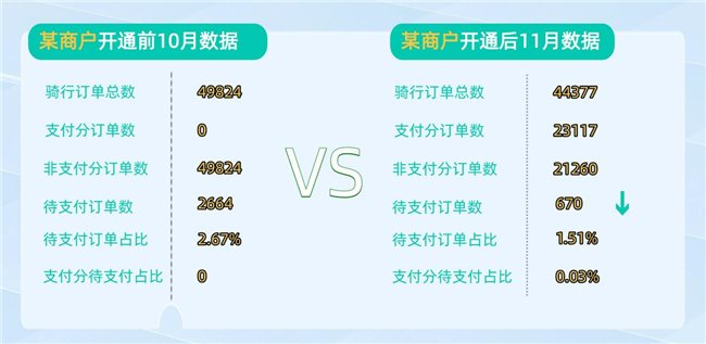 图片丨某商户骑行支付订单数据对比(开通前后)