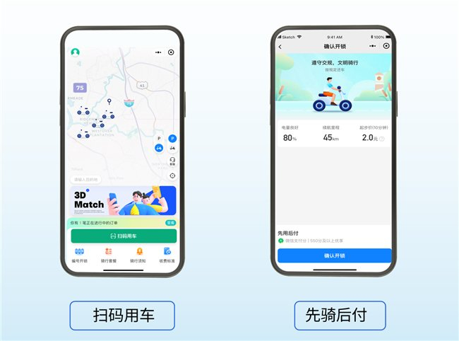 此前,平台就与腾讯达成深度合作,双方积极对接开通共享电单车的微信支付分先享后付服务,共同完善行业的收费、付费机制。平台率先支持接入微信支付分功能,实现“免押金直接骑,骑行结束后,自动扣除骑行费”,帮助商户通过支付分与用户建立信任基础。