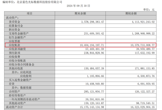 截至三季度末,蓝色光标目前的应收账款高达104.04亿,是净利润的84倍多!